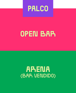 Setor Arena (bar vendido): o ingresso dá direito ao setor Arena, onde as bebidas poderão ser pagas à parte.